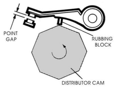 Estes contatos abrem e fecham o circuito conforme a rotação da came que se encontra montada no eixo do distribuidor, eixo este que é guiado pelo eixo de comando do motor.