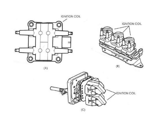As bobinas de ignição que estão contidas num simples bloco como mostra a figura 24(A), possuem uma bobina para cada cilindro num motor com 4 cilindros. Em contraste, o bloco de bobinas mostrado na figura 24(B), contém uma bobina para cada dois cilindros num motor com 6 cilindros. Já na figura 24(C) é mostrado um bloco de bobinas que contem uma bobina para cada par de cilindros num motor com 4 cilindros.