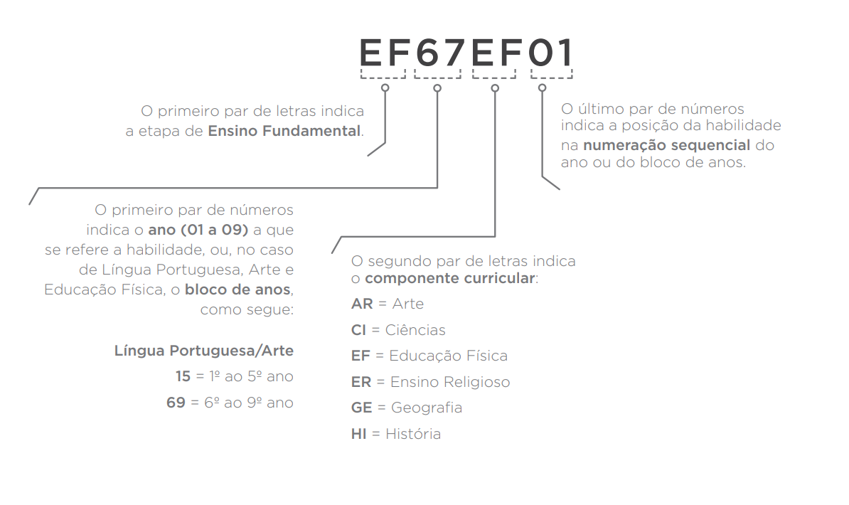 A seguir mostraremos como identificar os objetivo de aprendizagem e desenvolvimento através do código alfanumérico no ensino fundamental: