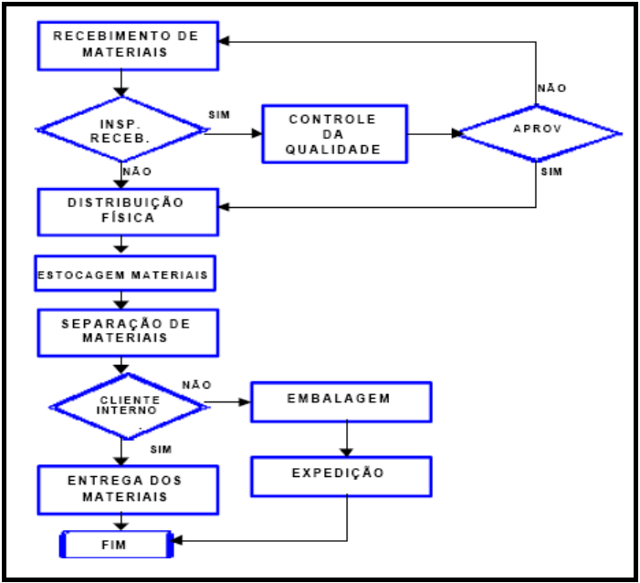 Todo material que chega à empresa deve ser recebido, conferido qualitativamente e quantitativamente, identificado e caso necessário deve ser submetido a testes de recebimento. Moura (1997, p.118) menciona que o recebimento inclui todas as atividades envolvidas no fato de aceitar materiais para serem adotados . Esta atividade é fundamental, pois quase sempre é nela que se inicia processo de rastreabilidade do material através da identificação dos lotes de fornecimento (quando aplicável), e a denominação do local onde o material iniciará seu processo de movimentação dentro da empresa.