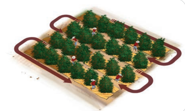 Derrice o café sempre no sentido favorável dos ramos