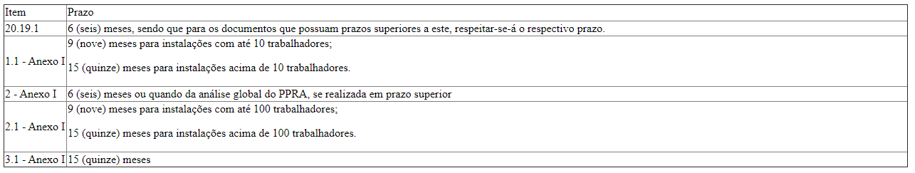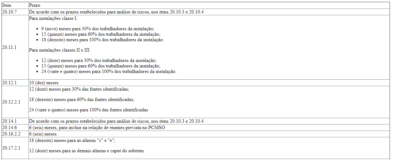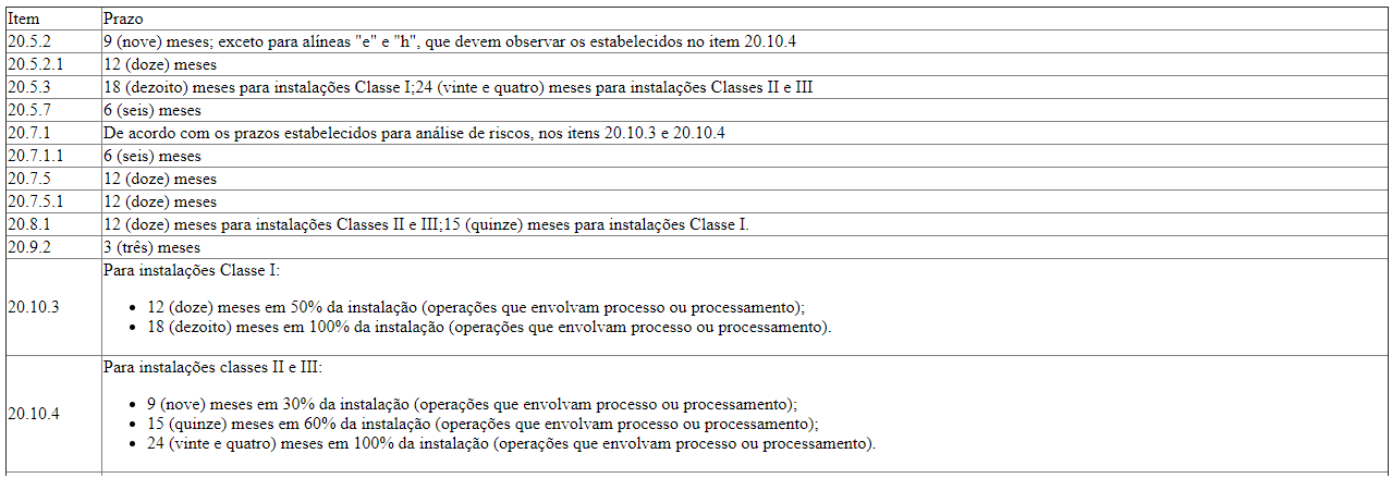 Art. 4º Após 12 meses da publicação deste ato, a CNTT da NR-20 avaliará os prazos consignados, podendo propor ajustes.