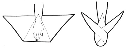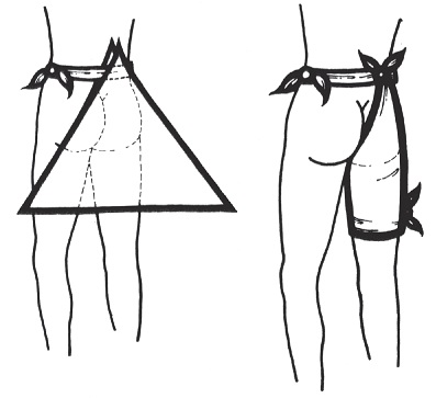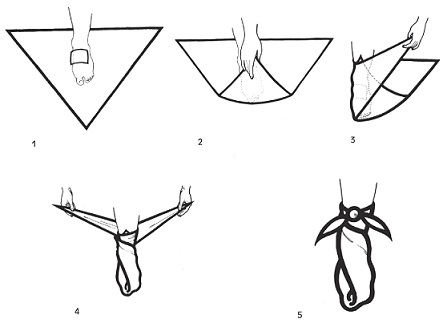 Observação: O vértice duplo na cintura deve firmar-se à tira com um nó para que a bandagem fique firme.