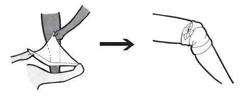 - Cruzar as outras duas pontas sobre a mão enrolando-as no pulso e dando-lhes um nó.