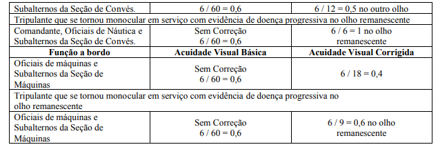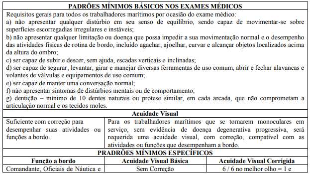 Para todas as funções a bordo serão considerados como padrões mínimos específicos: