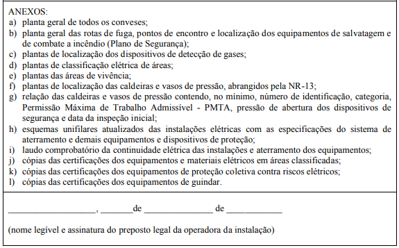 37.5.1.1 A DIM deve ser elaborada pela operadora da instalação e assinada pelo seu preposto legal.
