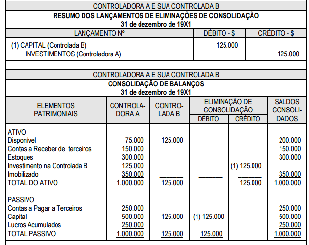 Forma de evidenciação da consolidação