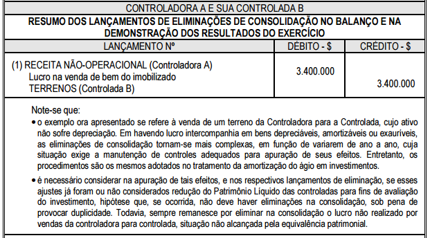 Eliminação de lucro ou prejuízo em ativo imobilizado