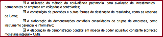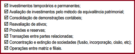 Destacam-se como temas principais da Contabilidade Avançada: