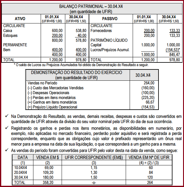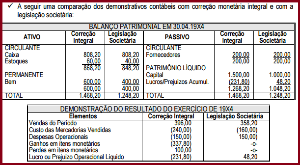 Dessa forma, a essência do sistema pressupõe a adoção de índices capazes de refletir a perda do poder de compra da moeda corrente, de forma a atualizar os saldos contábeis e a reconhecer seus efeitos no resultado do exercício da empresa.