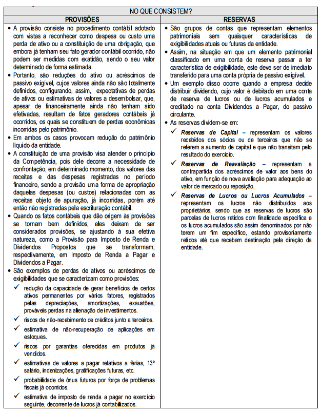 Distinção entre provisões e reservas