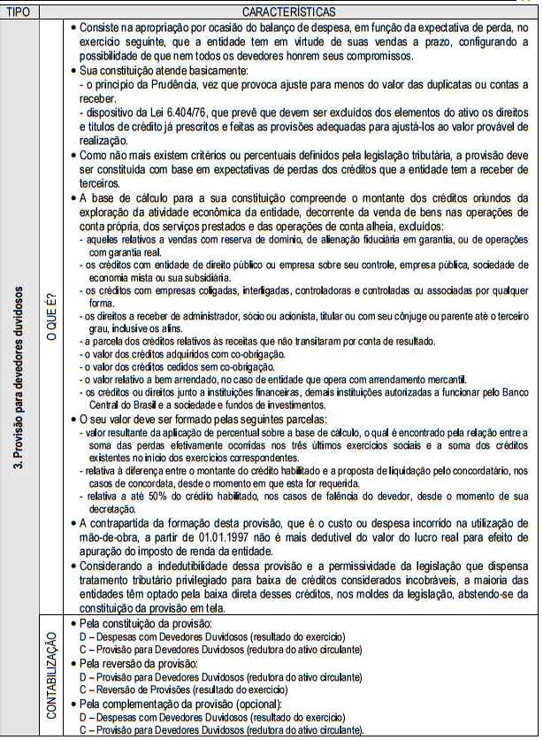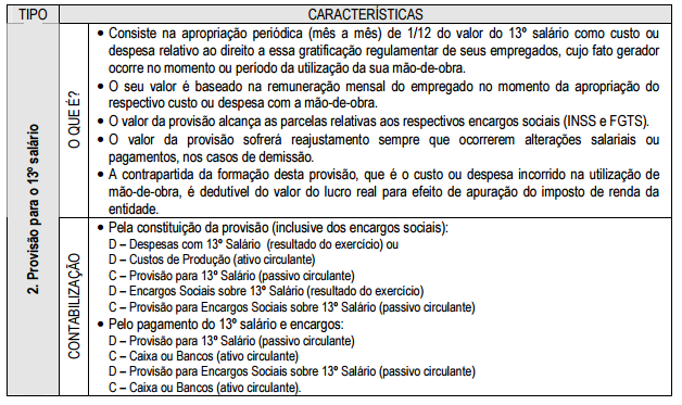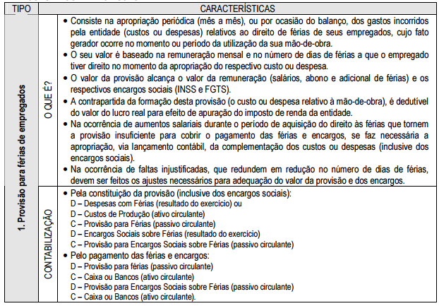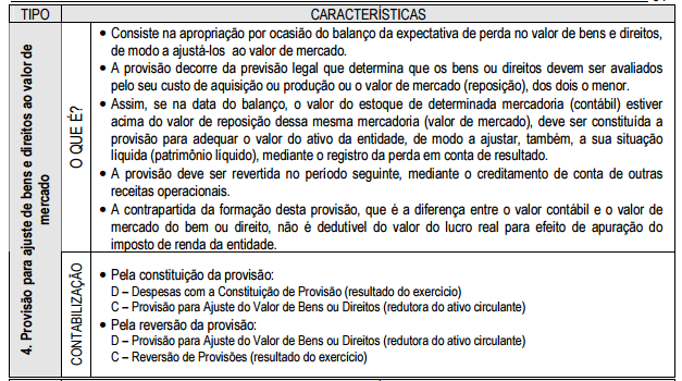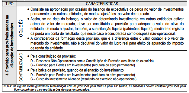 Alguns tipos de provisões