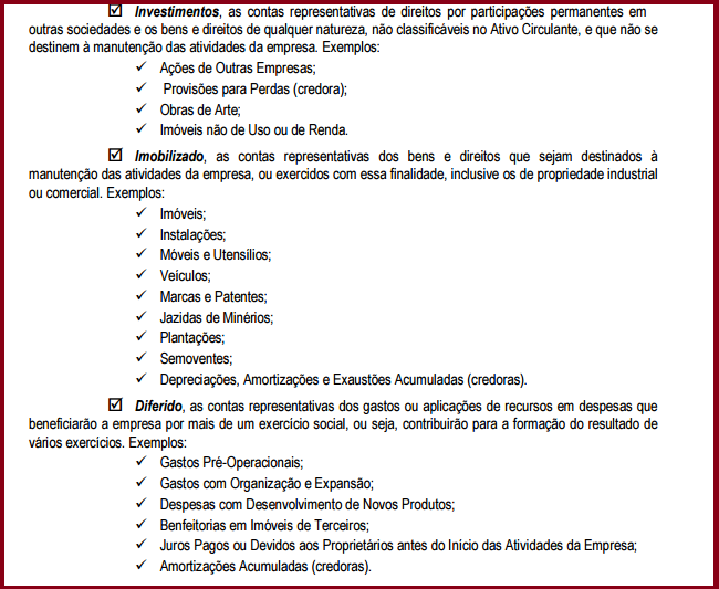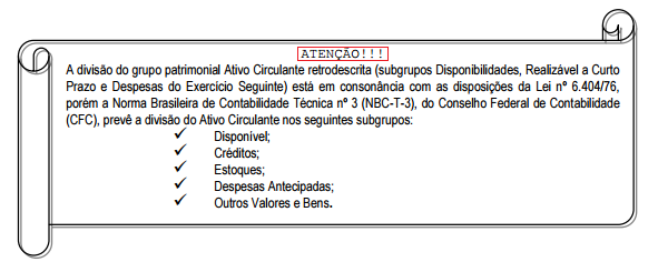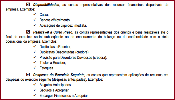 Classificação dos Elementos do Ativo