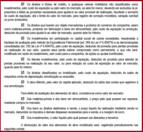 Avaliação dos Elementos do Ativo