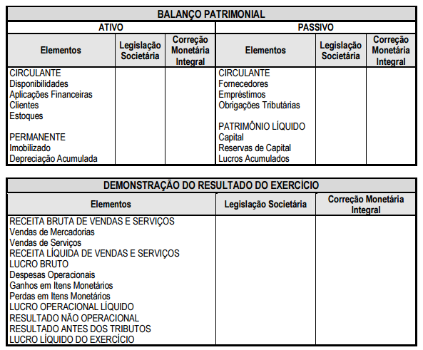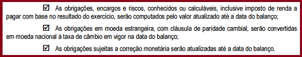 • títulos e saldos das contas constantes do Balanço Patrimonial, elaborado na forma da legislação societária, quando forem divergentes daqueles apresentados nas Demonstrações Contábeis com Correção Integral.