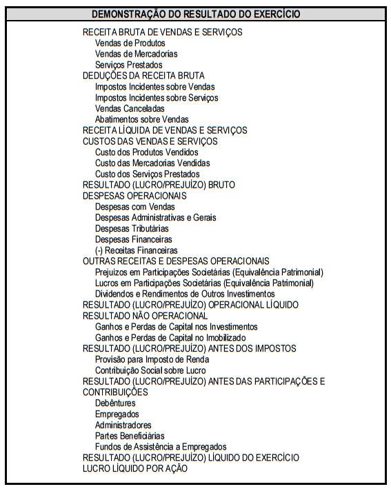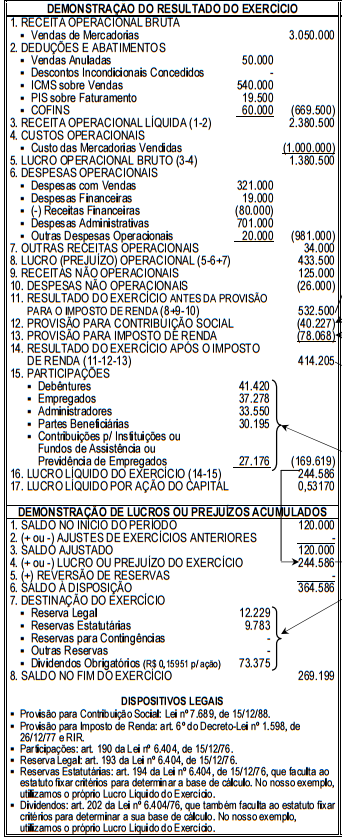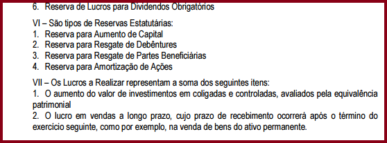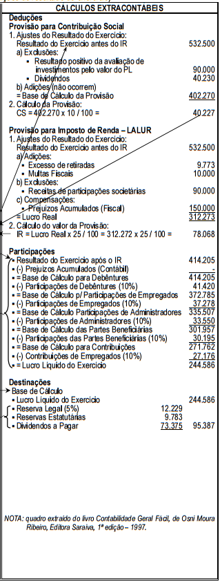 QUADRO–RESUMO ILUSTRATIVO DA APURAÇÃO DO LUCRO (deduções, participações e destinações do resultado do exercício)