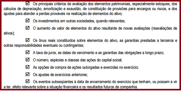 A adoção desta prerrogativa está condicionada a que as companhias evidenciem em notas explicativas anexas às suas demonstrações as seguintes informações de caráter complementar: