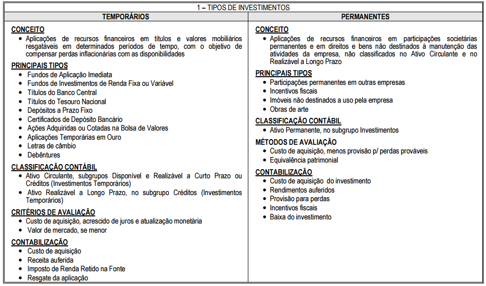 Investimentos Temporários e Permanentes