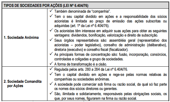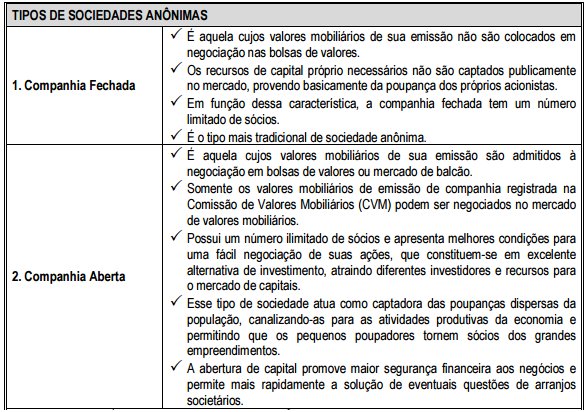 Representação Gráfica dos tipos de sociedades quanto a forma de participação societária de acordo com a lei Nº 6.404/76