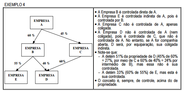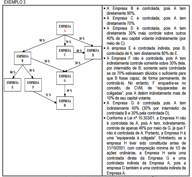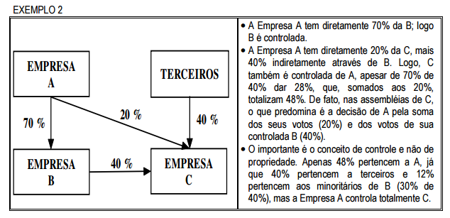 Exemplos de Empresas coligadas e controladas direta ou indiretamente em que todas as porcentagens são de capital votante