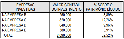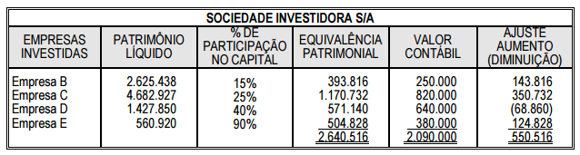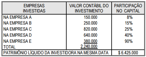 Patrimônio líquido das investidas