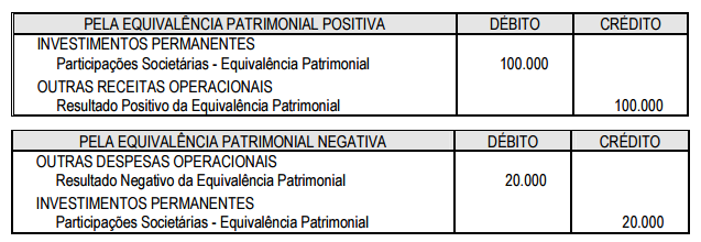 Contabilização do resultado da equivalência patrimonial