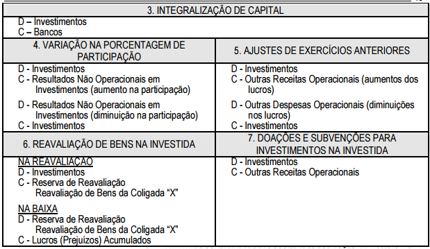 Contabilização no método da equivalência patrimonial de alguns tipos de variações no investimento permanente no patrimônio líquido da coligada ou controlada