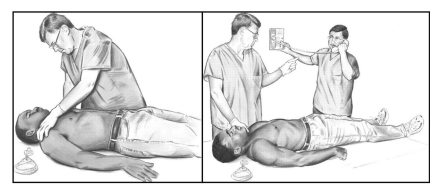 • Circulação – O pulso está presente? Não se deve demorar mais do que 10 segundos para identificar o pulso. Existe alguma hemorragia grave? Na ausência de pulso iniciar de imediato com 30 compressões torácicas, em uma frequência de no mínimo 100 vezes por minutos, com a profundidade de 5 cm. Prevenir ou tratar o estado de choque.