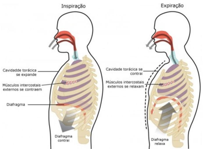 Para que ocorra o processo de respiração, é necessária uma ação conjunta de músculos intercostais e do diafragma, que permitem a entrada e a saída do ar. O ato de respirar pode ser dividido em dois movimentos básicos: inspiração e expiração.