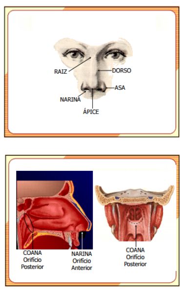 Ao abordar o nariz, refere-se ao nariz externo, a cavidade nasal e aos seios paranasais.