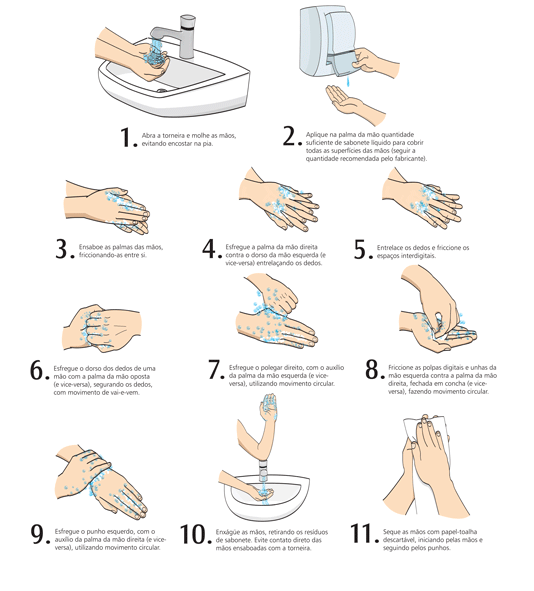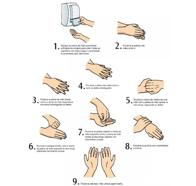 Veja abaixo as técnicas corretas para higienização das mãos: