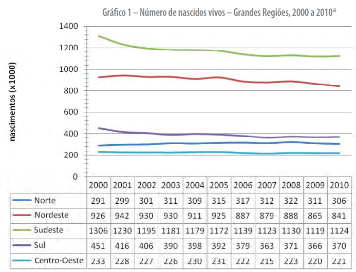 O ECA estabelece que os hospitais e demais estabelecimentos de atenção à saúde da gestante são obrigados a fornecer a DN, com dados sobre o parto e o RN. A cobertura do Sinasc abrange mais de 90% do total de nascimentos do País, e de forma geral seu preenchimento é adequado. A análise dos dados obtidos no MS/SVS/DASIS/CGIAE confirmam a tendência de queda do número de nascidos vivos no País, passando de 3.206.761 em 2000 para 2.861.868 em 2010, representando uma redução de 10,8% dos nascimentos no período.