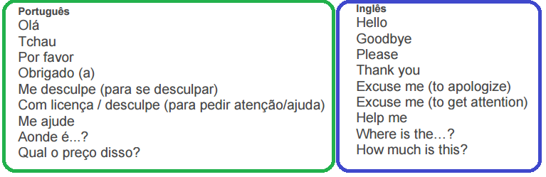 Confira essa lista de palavras/frases-chave para as suas viagens: