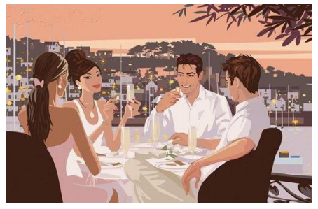-Não se deve estender a mão, num restaurante, quando se está à mesa ou a outra pessoa o está. Basta uma saudação com a cabeça, mesmo que se chegue à mesa para conversar. Nesse caso, os homens levantam-se para cumprimentar, de longe, a senhora ou senhor.
