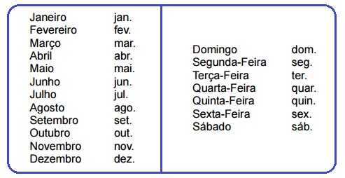 Abreviações de Meses e Dias da Semana: