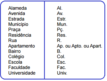 - Não usar abreviaturas nas correspondências endereçadas ao Presidente da República, Vice-Presidente da República, Governadores, Vice-Governadores, Reitores de Universidades, Papa, etc.
