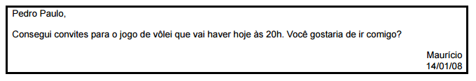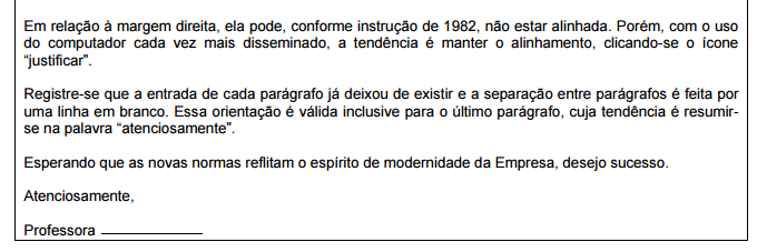 Este documento não pode conter rasuras. Se houver erro, consertar com “digo” ou “em tempo”. As palavras devem ser escritas legível e corretamente. Não pode haver abreviaturas e deve ser escrita em um único parágrafo.