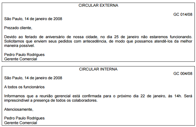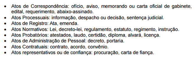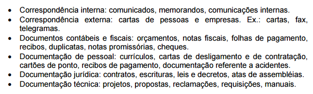 • Eventuais: atestado, circulares, procurações, etc.