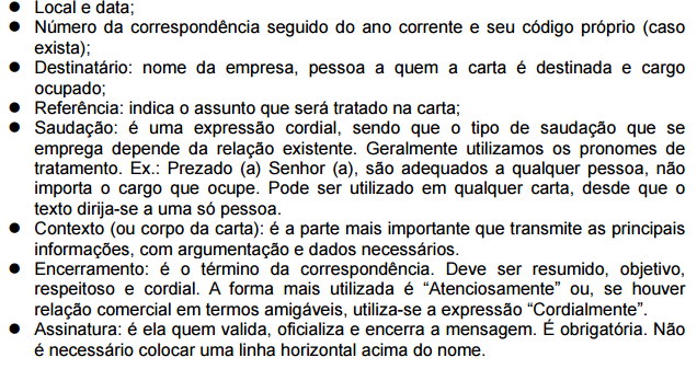 • Carta: é o mais tradicional meio de comunicação que você dispõe para a troca de mensagens. As cartas classificam-se em cartas comerciais (cujo remetente é pessoa jurídica), não-comerciais (cujo remetente é pessoa física), social (facilita o acesso às pessoas de classes menos favorecidas), via internet (captação e envio de mensagem através da internet, disponível através da página dos Correios na internet (acima mencionada).