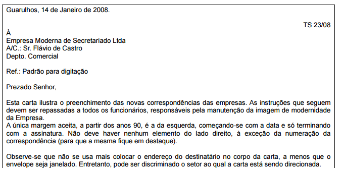 O cargo ocupado por uma pessoa em uma empresa determina a forma de tratamento que deverá ser empregada na correspondência comercial.