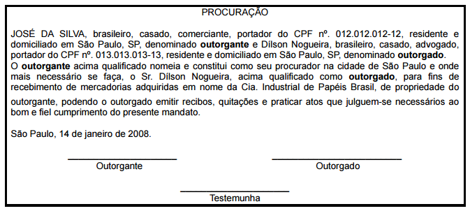 • Procuração: trata-se de um documento de valor legal, onde alguém passa poderes específicos para outro alguém poder representá-lo na sociedade.