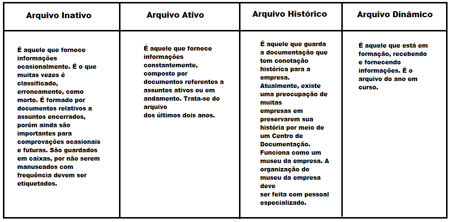 Na maioria das vezes, consideramos o “fazer arquivo” como o pior de todos os nossos desempenhos. À medida que percebemos sua importância, conhecendo novos métodos e materiais, o “fazer arquivo” torna-se algo tão interessante quanto as demais funções que desempenhamos. Para facilitar o manuseio e a localização de documentos e outros materiais do arquivo, devemos separá-los por grupos, ou seja, administrativos, operacionais, informativo, correspondência geral, cd´s, dvd´s, videoteca, biblioteca, projetos entre outros.