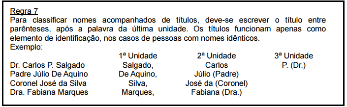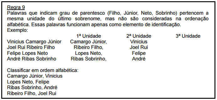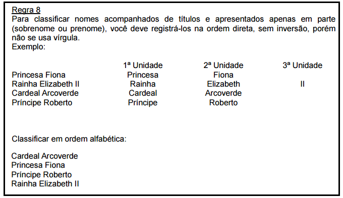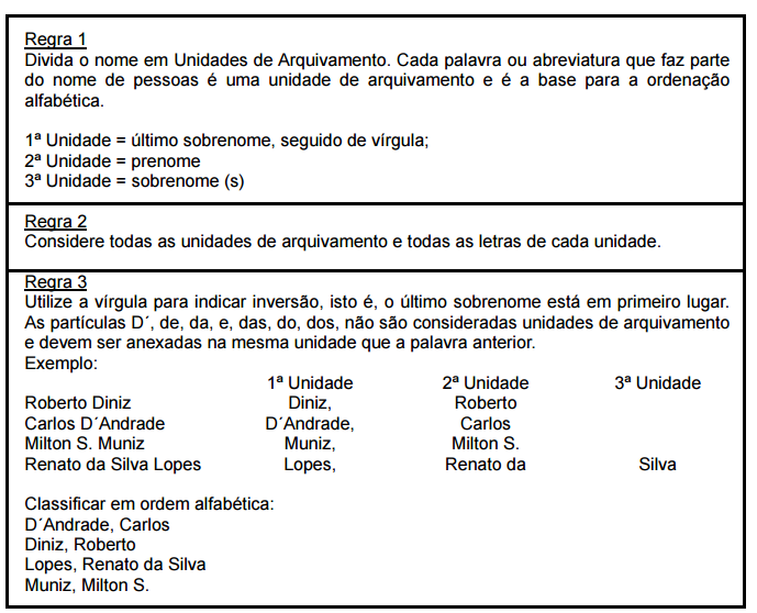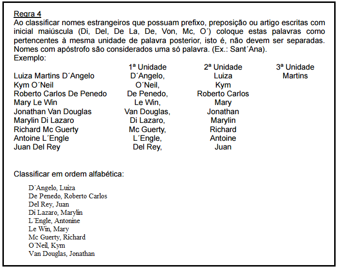 Regras de classificação alfabética para nomes de pessoas (próprios):