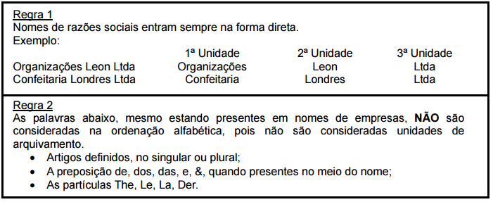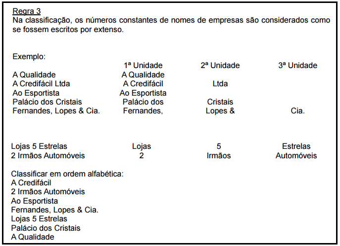 Regras de classificação alfabética para nomes de empresas: