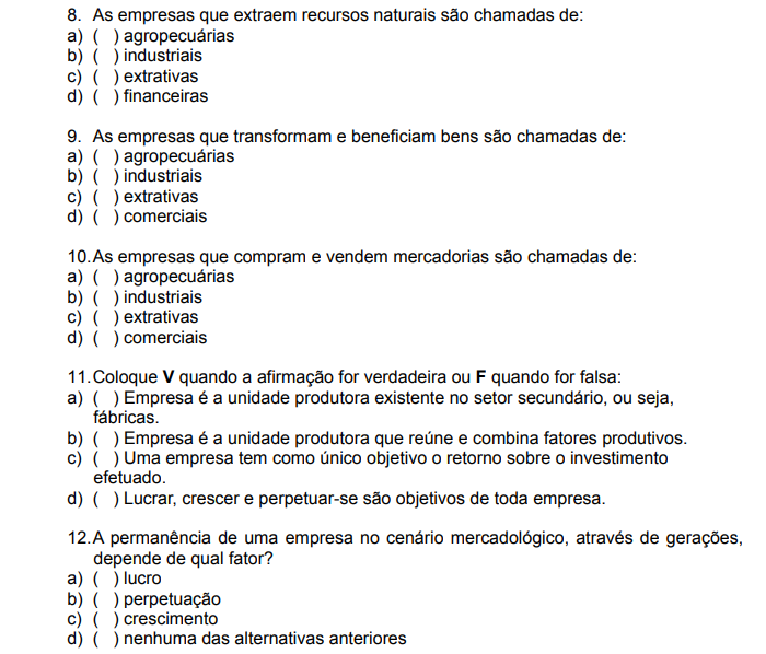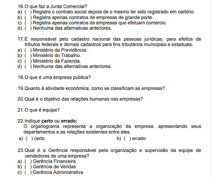 5. Indique certo ou errado: