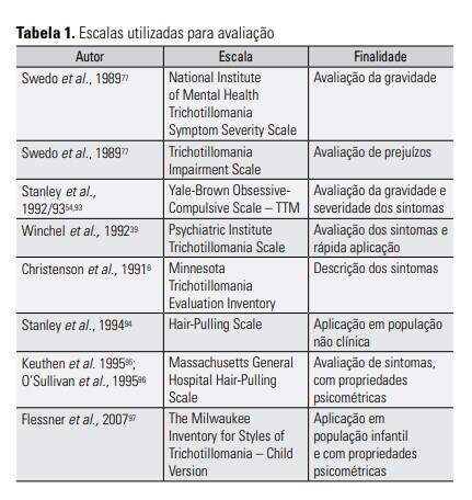 Foram consultados estudos e revisões dos últimos 30 anos, até fevereiro de 2009, tendo sido utilizados os termos “trichotillomania”, “clinical characteristics”, “etiology”, “epidemiology”, “diagnosis” e “treatment” nas bases de dados Medline/PubMed, Lilacs, PsycINFO e Cochrane Library. Livros-textos e relatos históricos relevantes foram incluídos.