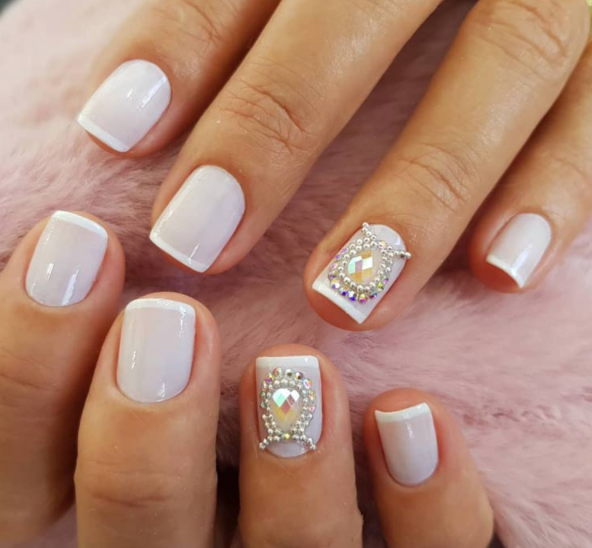 Você pode optar por colocar um pequeno brilho na base de cada unha ou decorá-las inteiras com strass e glitter. Você ousa? Garantimos que será uma das tendências mais fortes deste ano.