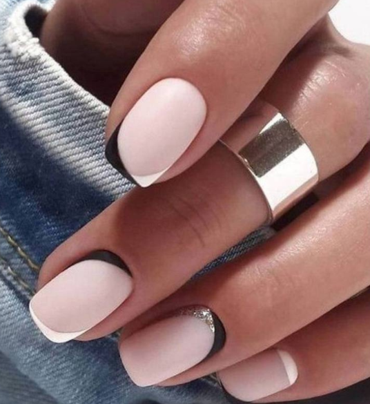 Em 2020, a decoração da francesinha triunfou, mas renovou. Tratava-se de usar a unha nua e colorir a ponta com desenhos diferentes: estampas de animais, cores sólidas, brilhantes … Nesta nova temporada, essa tendência dá outro passo. A partir de agora, o que será bem-sucedido são os desenhos assimétricos para os quais você pode escolher o motivo que mais gosta. E, se preferir, você pode optar por combinar duas ou três cores. Com este design, você terá um estilo muito moderno para as unhas. Que tal a ideia de combinar branco, preto e nu?