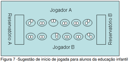 2) O território de cada jogador será a fileira de concavidades à sua frente e o reservatório à sua direita;
