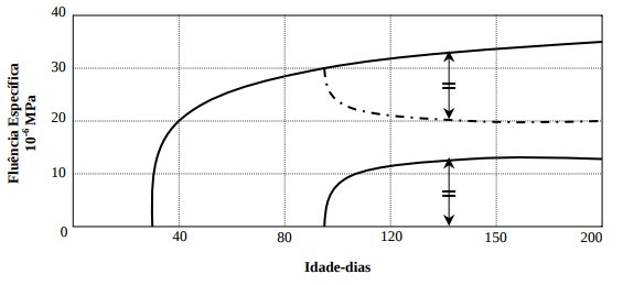 Para temperaturas abaixo de 5ºC, a deformação lenta praticamente cessa. Por outro lado, para temperaturas acima de 20ºC a fluência aumenta. Este fato é notado principalmente em pontes, nas quais o concreto do tabuleiro, sobre o qual existe uma camada de asfalto, atinge temperaturas acima de 40ºC quando exposto à radiação solar durante um longo tempo, EQUIPE DE FURNAS [2000].